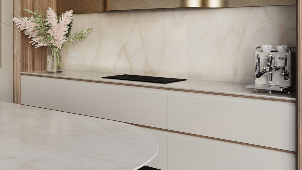 The latest iteration of the distinctive Calacatta marble, Marbannova reflects the global shift towards warmer hues for interiors. Featuring a warm white base with prominent veining, Marbannova is infused with striations of subtle gold, warm grey and muted copper. Silk finish.