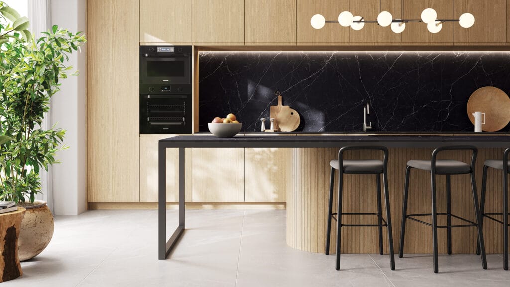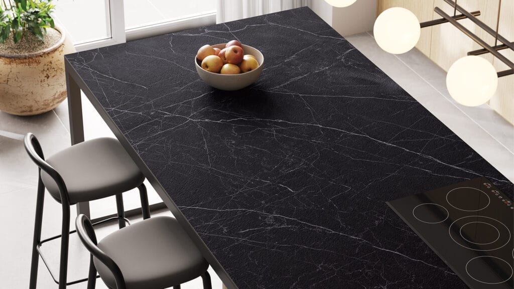 Bold, striking and a complete game-changer! With its midnight-black base and lightning-like streaks and striations in chalk-white, Smokestone is a powerful statement for any interior. Its irregular calcite streaks and layers of earthy impurities create a surface that exudes luxury and timeless elegance. Ultra Rough finish.