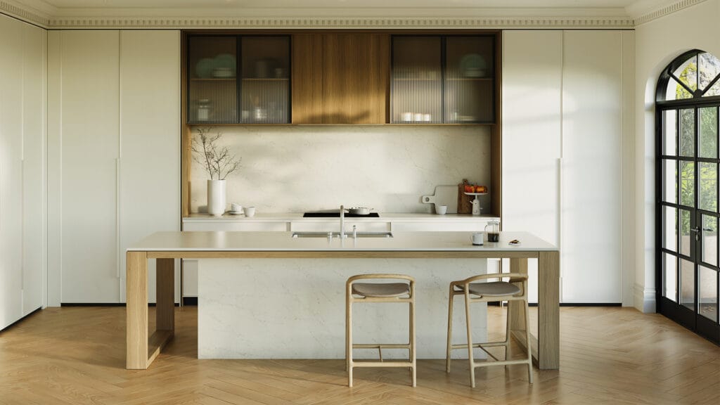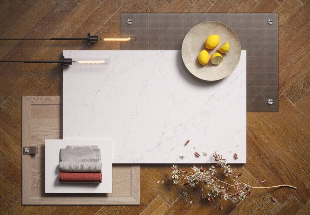 Inspired by the classic pure white of Carrara marble, Dreamy Carrara™ features a silky white, light-reflective base overlaid with a subtle, irregular tracery of fine veins in earthy greys.
