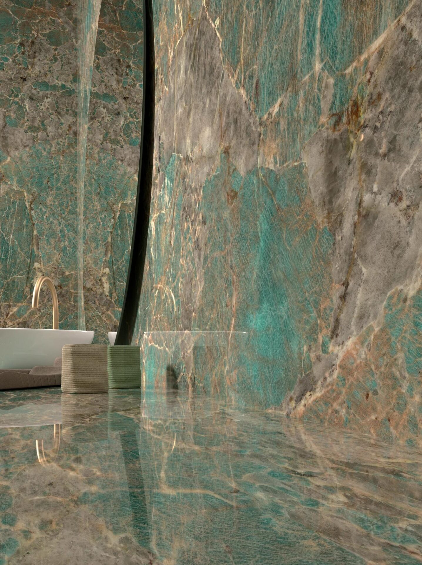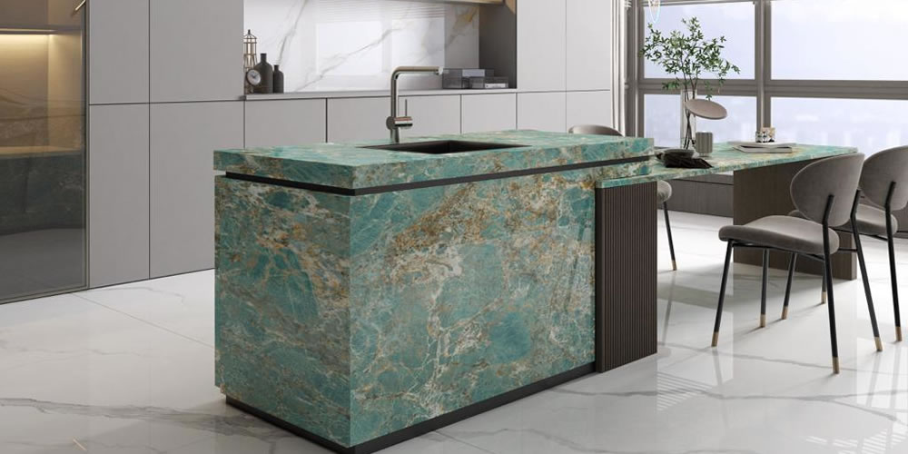 Artistic and modern, AC Stone Amazon Green has a stunning emerald green hue base, with copper brown webbed patterning that makes this piece a one of a kind surface. AC Stone Amazon Green mimics ocean water hues, plant life and exudes earthy tones, adding unique flare, design and artistry to any kitchen, entertainment or commercial space.