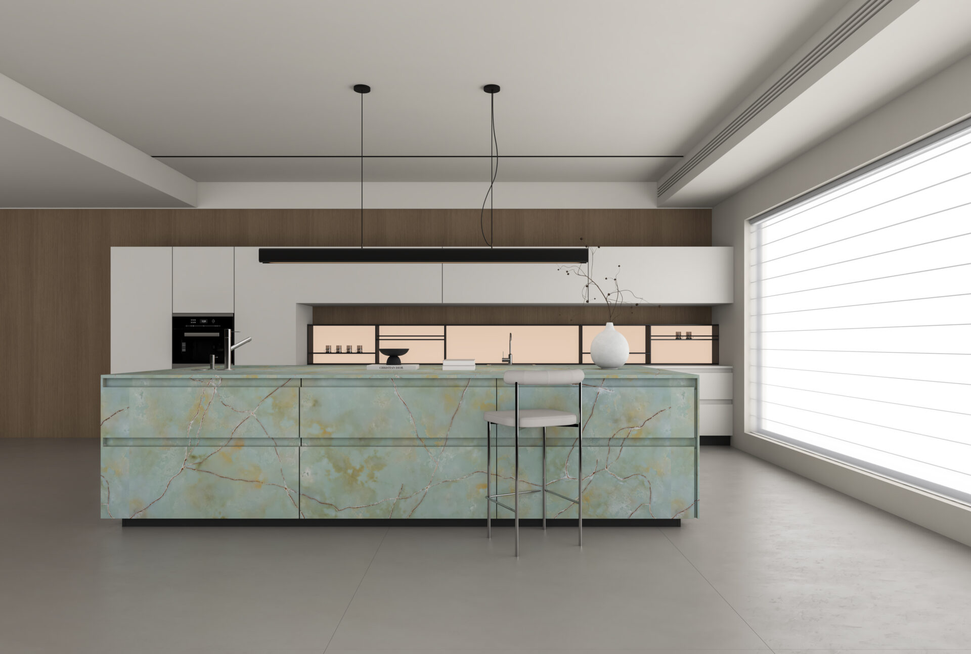 AC Stone Amazonite offers aa harmonious blend of seafoam green and cool steely tones accented by captivating flecks of mahogany and golden butterscotch. It’s not just a stone—it’s a stunning work of art that brings sophistication and life to any environment. Its translucent quality allows light to pass through, enhancing its natural beauty and creating a radiant glow. More than just a stone, it’s a stunning work of art that infuses any space with life, sophistication, and elegance.