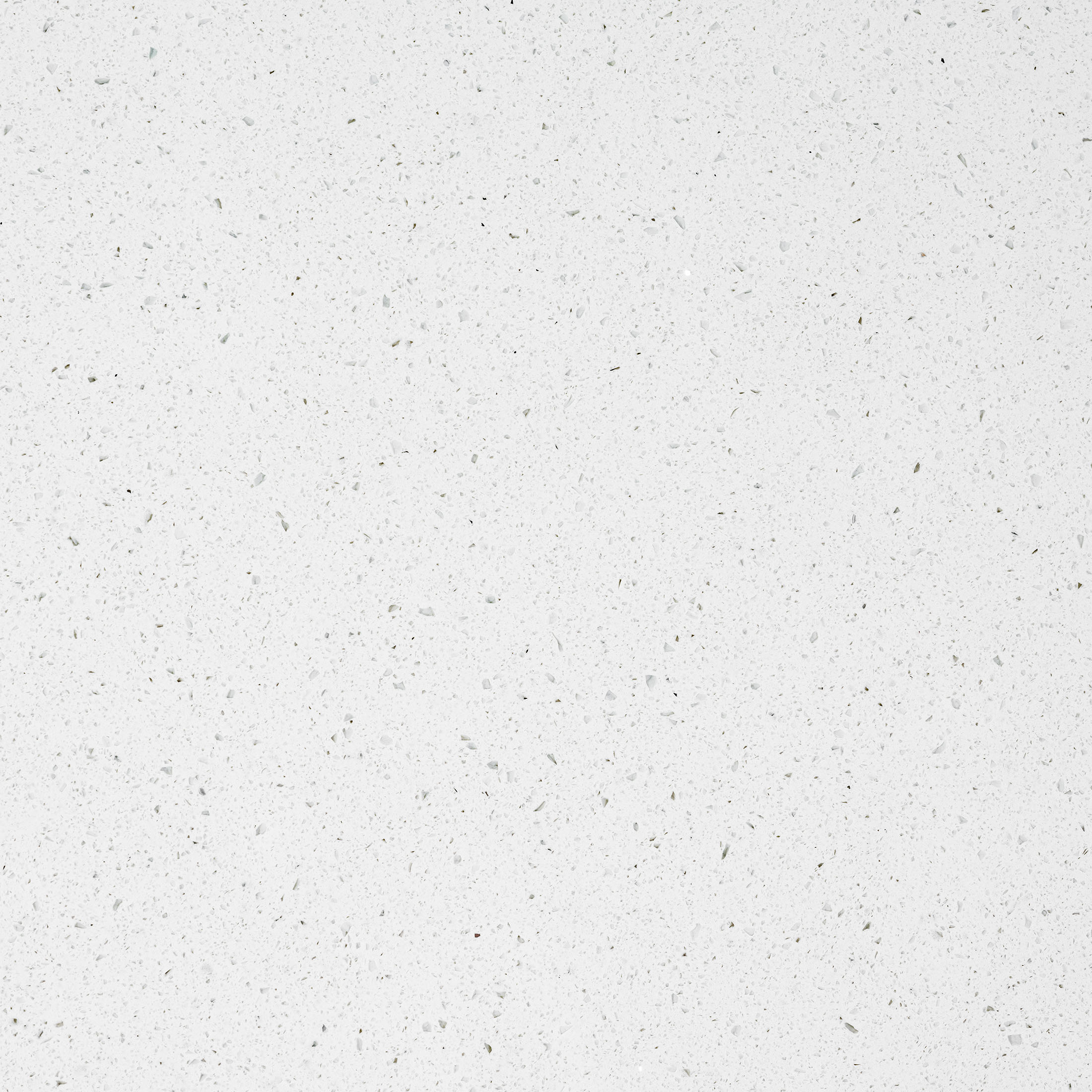 Against a milky white background, the fine speckled texture of Australis engineered stone is enhanced by the silver sparkle bouncing light across the surface.