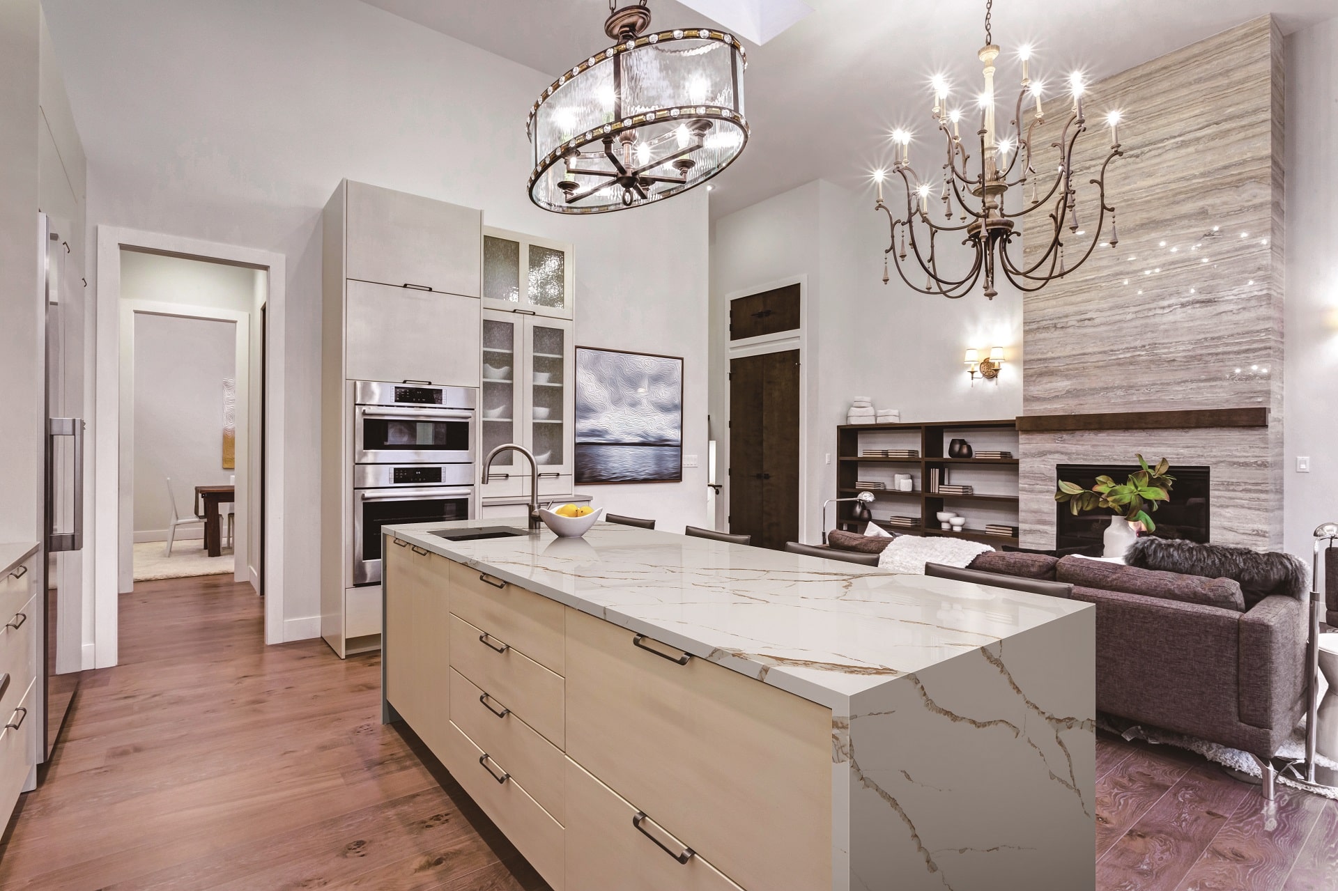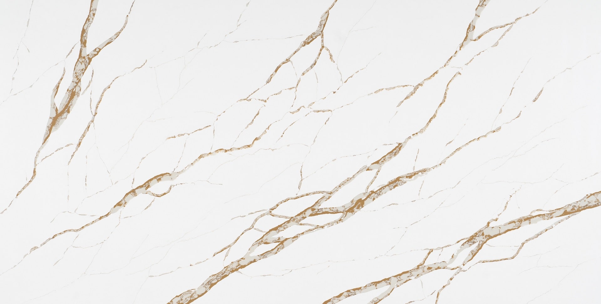 Calacatta Altin showcases a striking white background with dramatic gold veining, creating an opulent and elegant aesthetic. The rich golden hues add warmth and sophistication, making it a standout choice for upscale kitchens, bathrooms, and feature walls. This slab combines timeless beauty with durability, offering a luxurious alternative to natural marble.