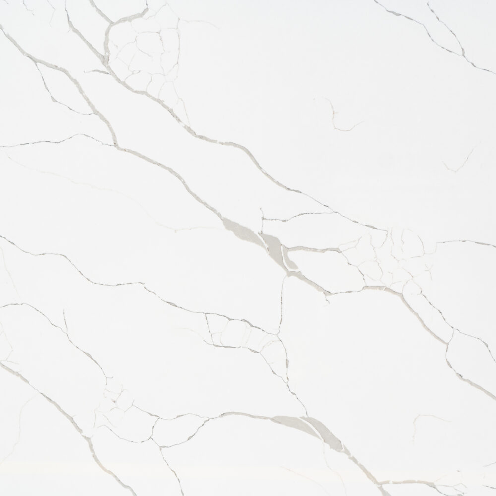 Inspired by Calacatta marble, Calacatta Combo has long thin dark brown and grey veins that branch diagonally through the piece. The design is striking and resilient, and makes for a great centerpiece and wow factor in the home.
