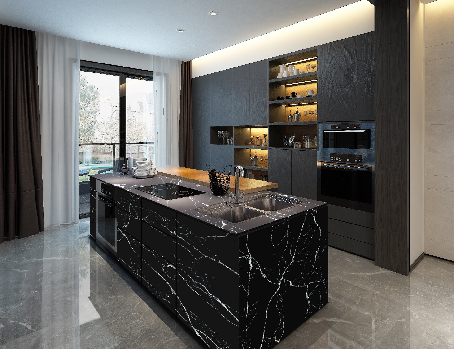Calacatta Monte Nero exudes bold sophistication with its deep black background and striking white veining. This dramatic contrast creates a sense of movement and elegance, making it a perfect choice for high-end interiors. Ideal for statement walls, countertops, and luxurious spaces.