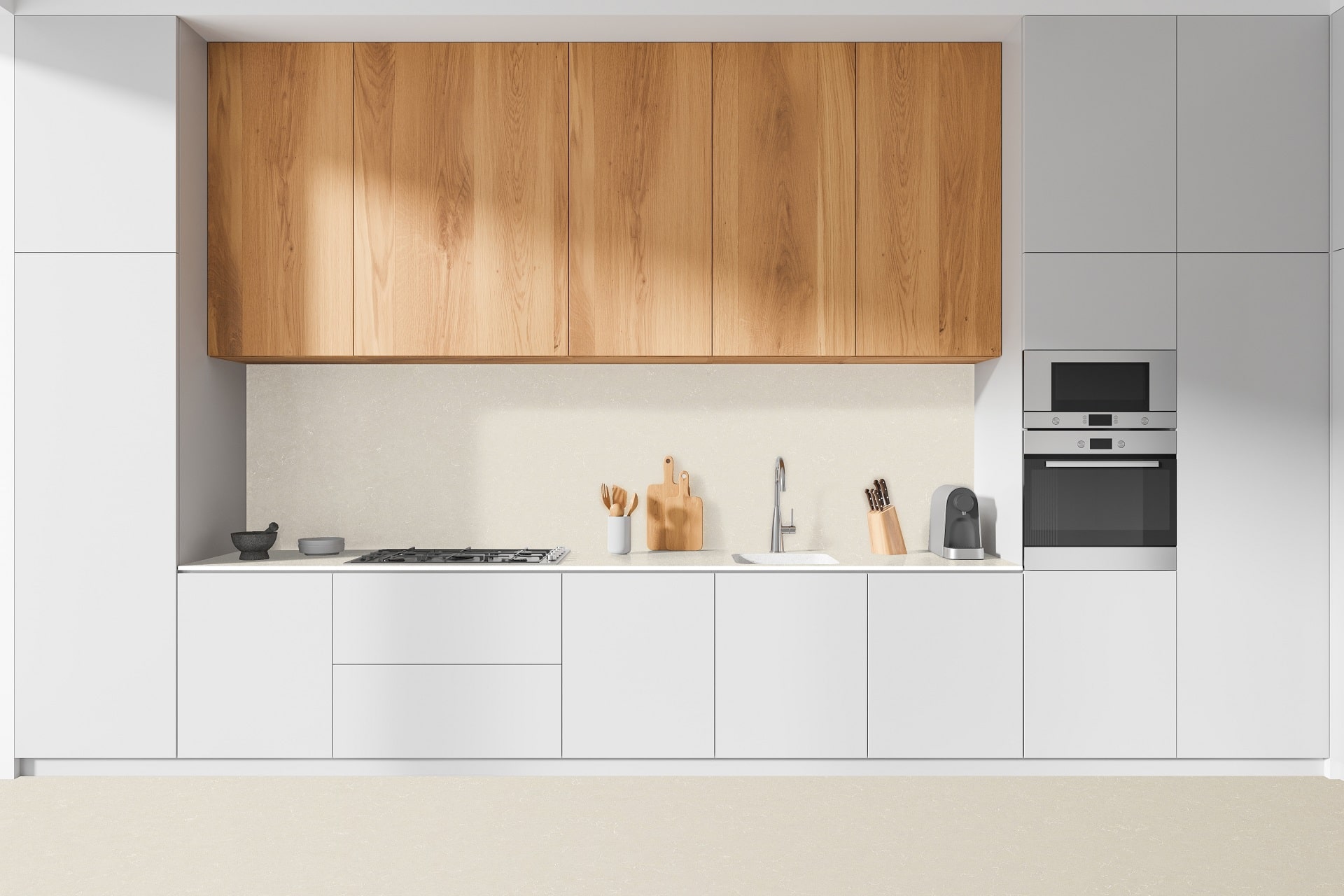 Cloudy Cream features a warm beige background with soft, subtle patterns, creating an inviting and elegant look. Its neutral tone makes it a versatile choice for kitchens, bathrooms, and accent spaces, blending seamlessly with various design styles. Durable and low maintenance, this surface offers both beauty and practicality.