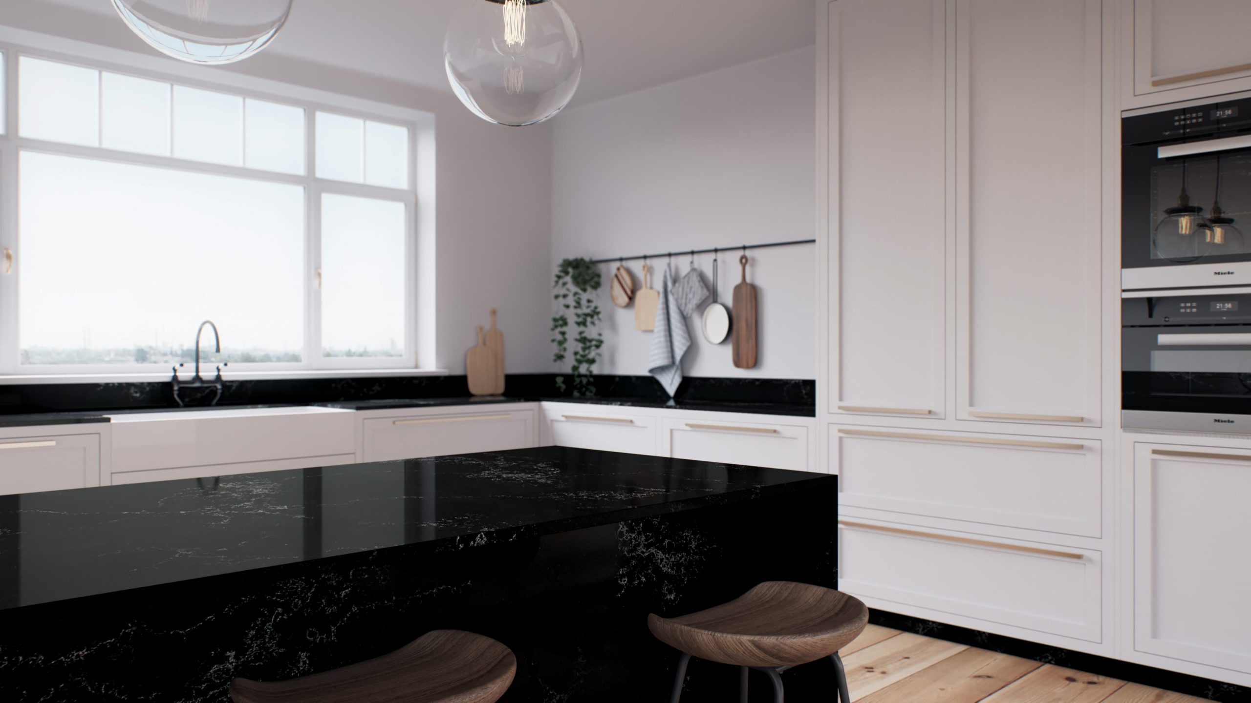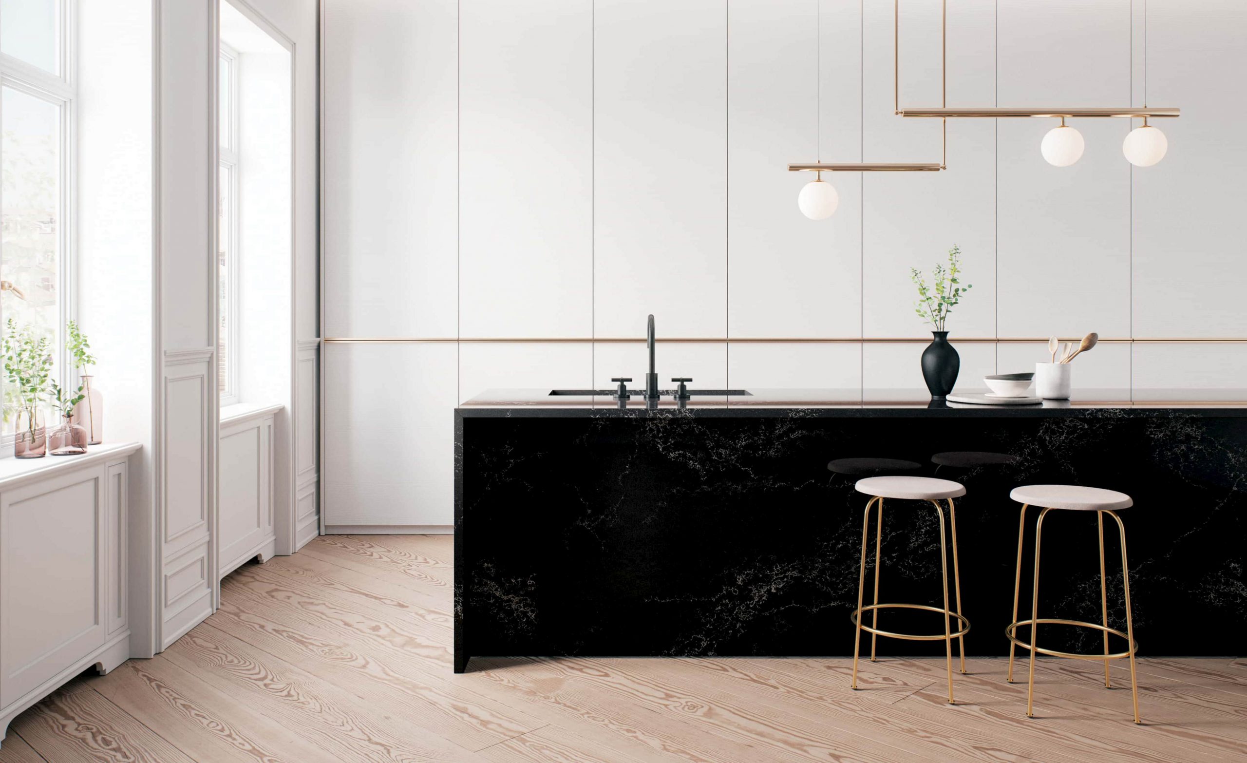 With all the mystery of any dark stone, Empira Black™ has a dark base composed of rich, deep black beautified by fine white natural veins. Emotional and full of depth, Caesarstone’s Natural Polish heightens its elegant feel without overwhelming its innate essence. Inspired by the authentic characteristics of natural forms, Empira Black™ endows the space with the sophistication of real marble.