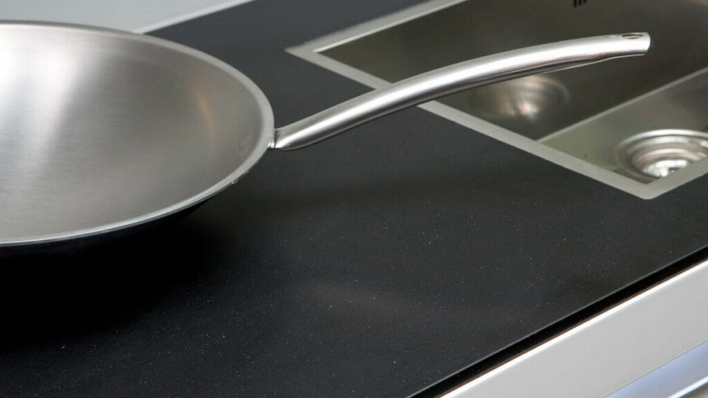 A captivating quartz surface design, Jet Black™ offers a consistent yet subtle pattern across its rich dark base.