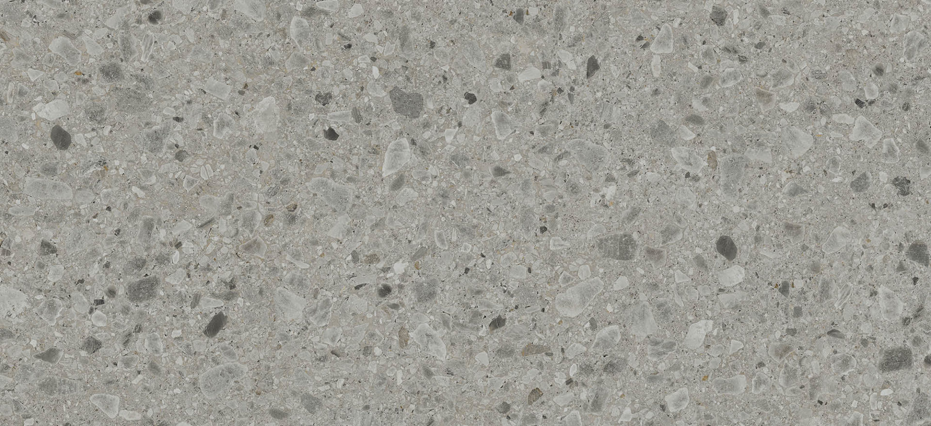 Kone Mix is inspired by the pebbled beauty of sought-after Italian Ceppo di Gré stone distinguished by a classic, light grey background scattered with large stone fragments.
