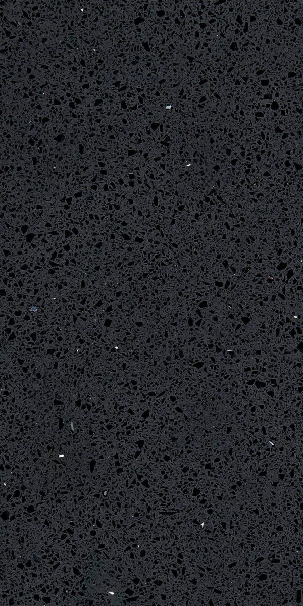 Subtle quartz crystals and mirror flecks scatter over a mysterious black canvas, resembling millions of stars twinkling in the Milky Way.