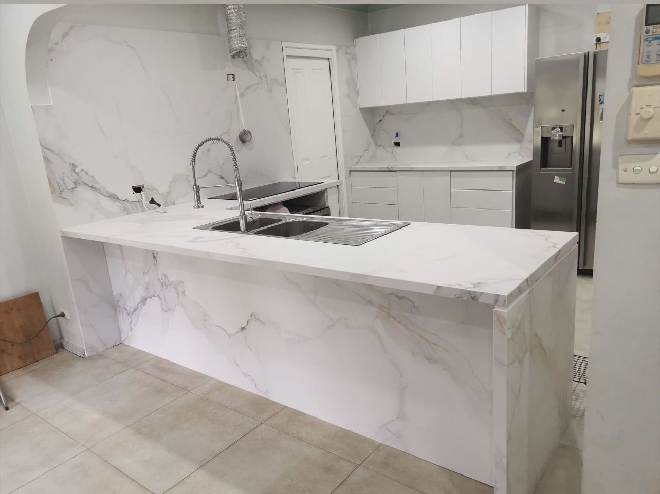 Porcelain is a strong, durable and heat resistant surface which can be used for both outdoor and indoor needs. Whilst emulating the look and feel of marble closely, Porcelain has added practicality, including being easy to maintain, and withstanding outdoor weathering.