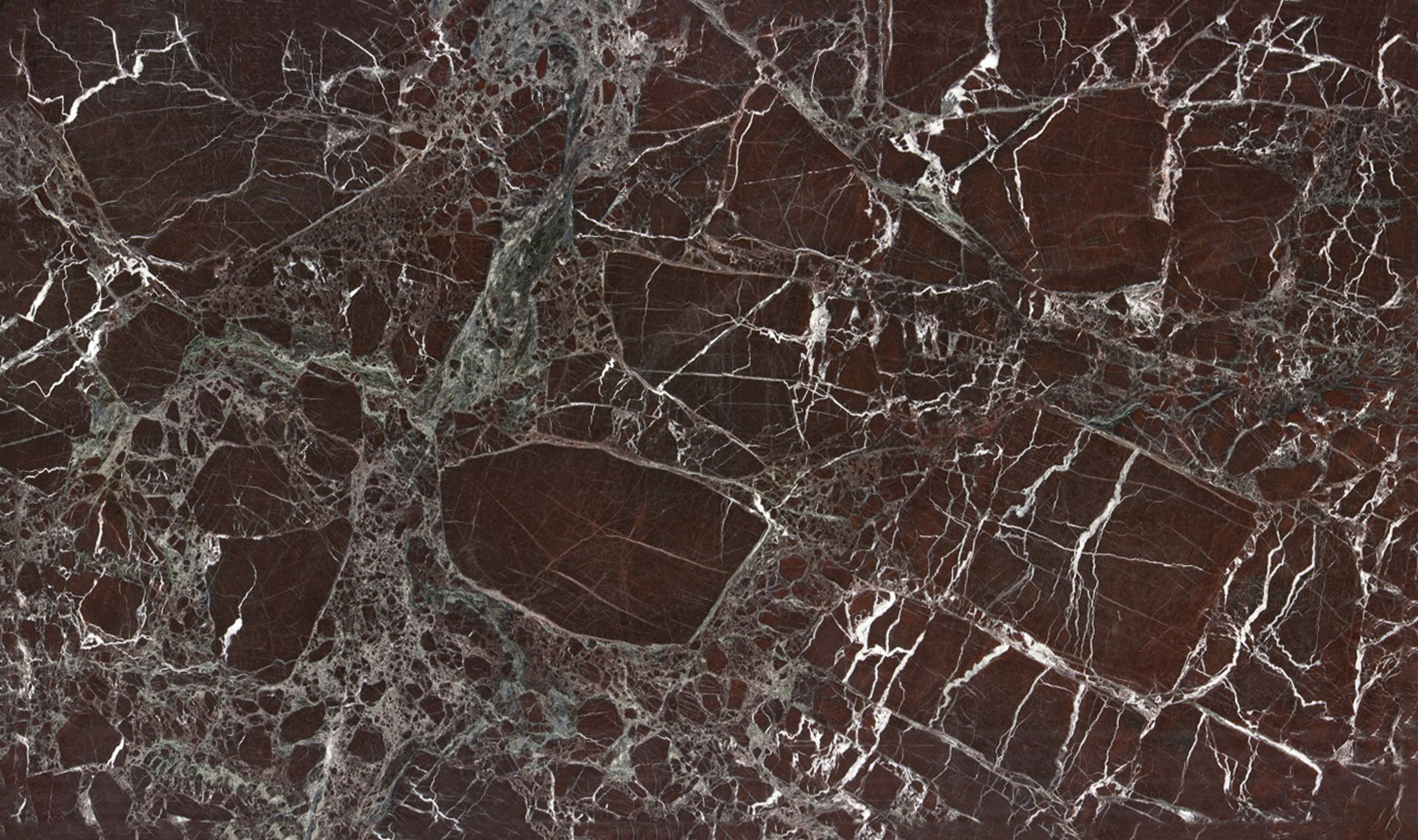 Deep burgundy marble veined with rich tones of forest green and white, offering a palette that feels both regal and dramatic. Unapologetically bold, Rosso Lepanto is pure luxury, with an old-money edge.