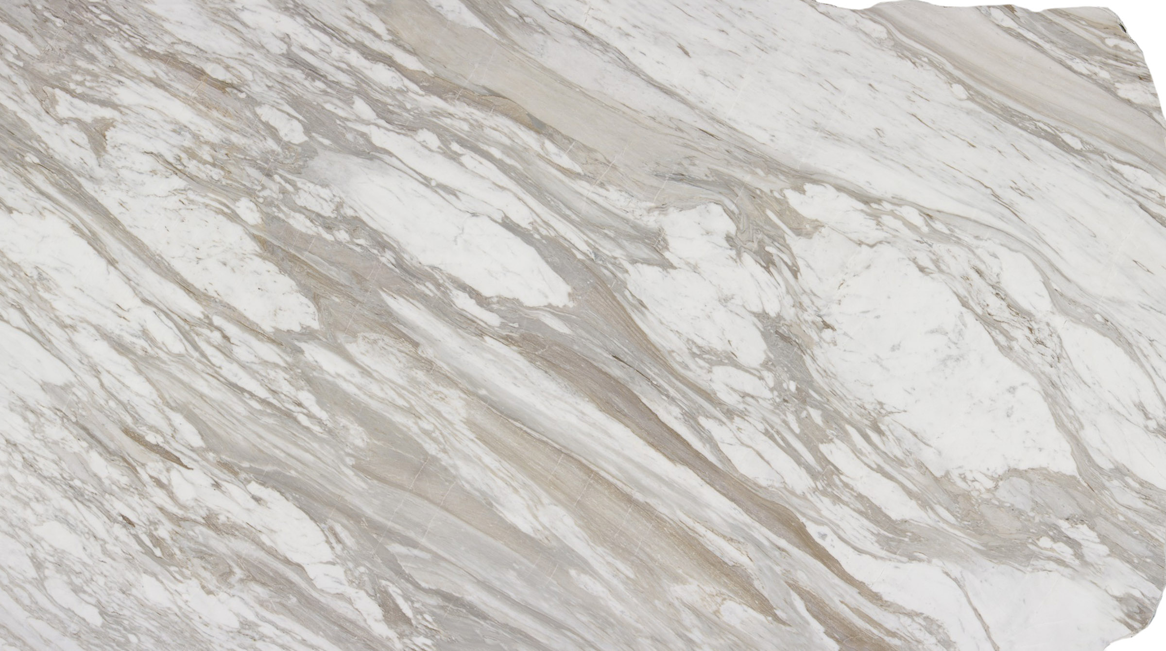 Volakas Calacatta showcases soft whites and warm browns, with elegant diagonal Calacatta veins that create a harmonious spread. Perfect for any application, this versatile lot retains its stunning beauty even in smaller pieces.