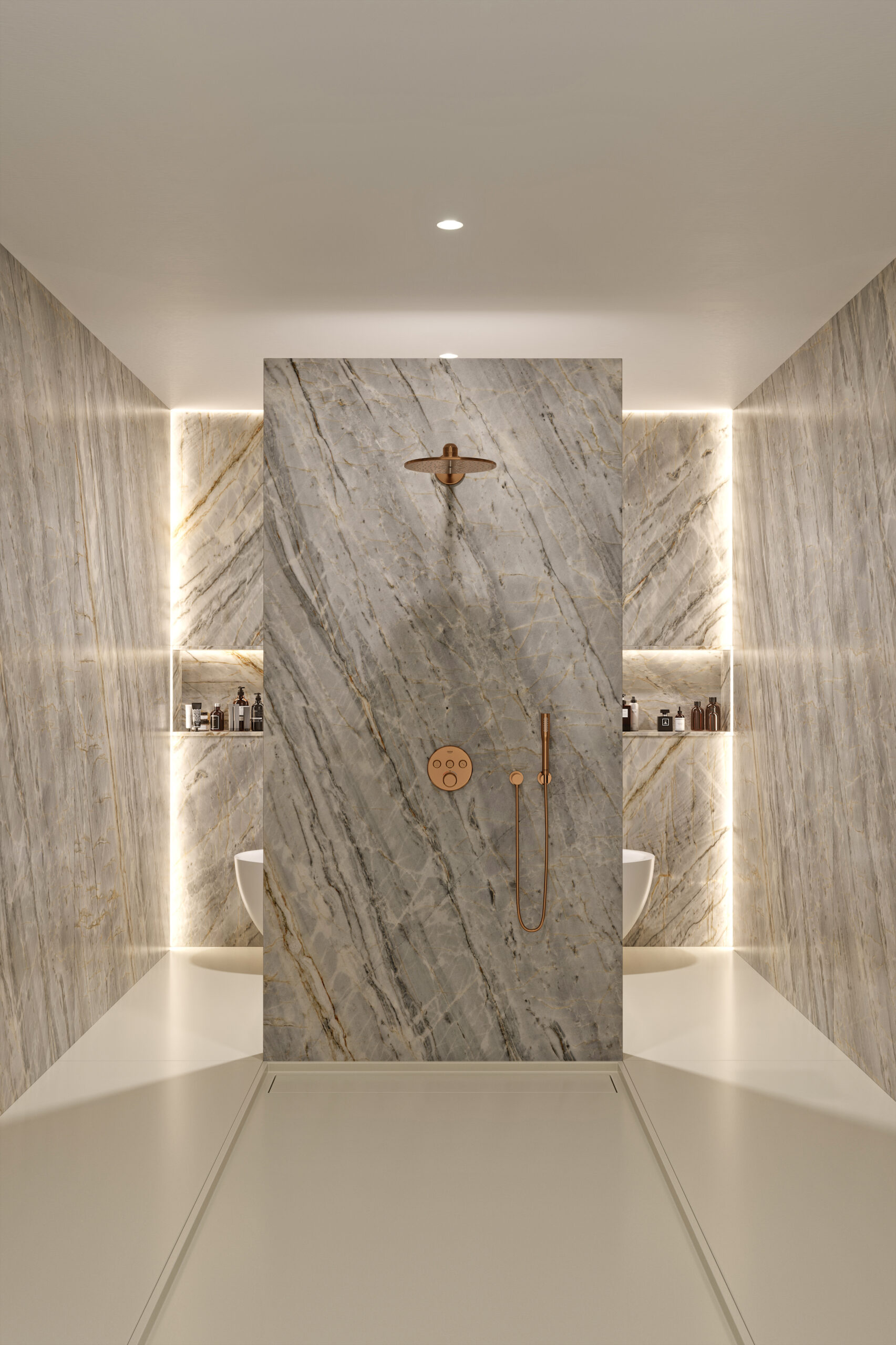 The natural elegance of Beverly Blue quartzite reaches new heights with Marau – a curated selection of the finest cuts of this Brazilian stone, featuring an ash grey and slate-coloured backdrop with sandy and yellowish veins and Sensa’s exclusive stain protection.