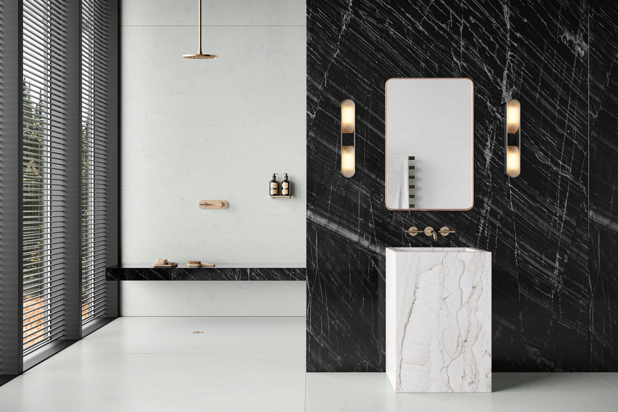Cosentino introduces Oihana, a unique selection of Brazilian Black Spider quartzite. Its black base is interspersed with endless white veins and gold speckles, creating a whimsical pattern reminiscent of the sweeping, elegant silk threads of a spider’s web. This inimitable natural stone is further enhanced by Sensa’s exclusive stain-resistant protection technology.