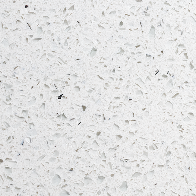 A crisp white stone featuring delicate polished aluminium speckles that shimmer subtly across the surface. Its refined texture adds depth and visual interest, making it a versatile choice for any space.