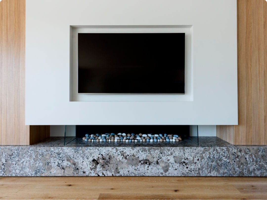 Snowfall lends warmth to modern architecture, highlighting a mix of metals from bronze, iron, pewter and gold. Blonde wood, black millwork and accents of warm grays create an environment of warm modernism.