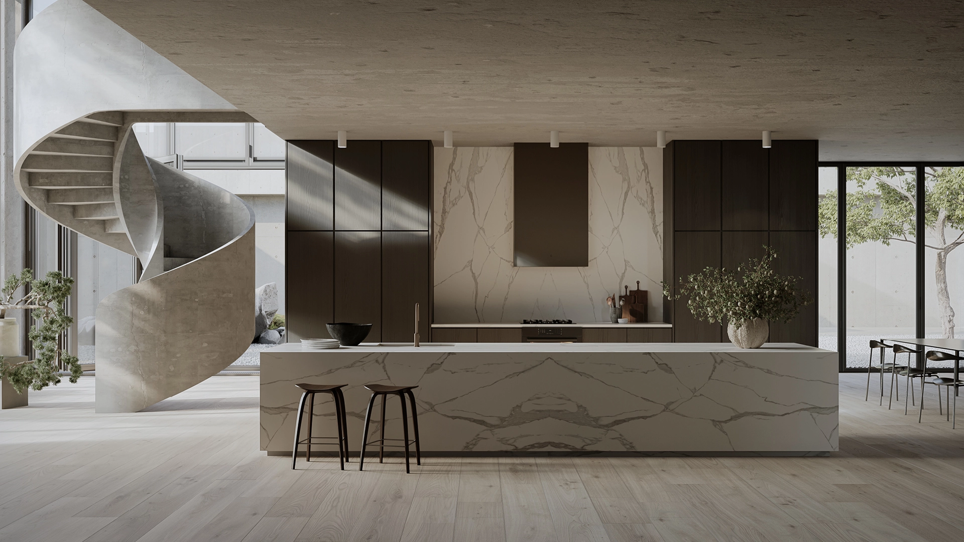 Statuario Grigio makes a dramatic design statement while preserving a sense of refinement and balance. Its bold, defined grey veining gives the surface a dynamic structure, evoking the prestige of Italian statuario marble. Ideal for high-impact installations—such as waterfall benchtops, feature walls, or commercial lobbies—it delivers luxury without compromise.