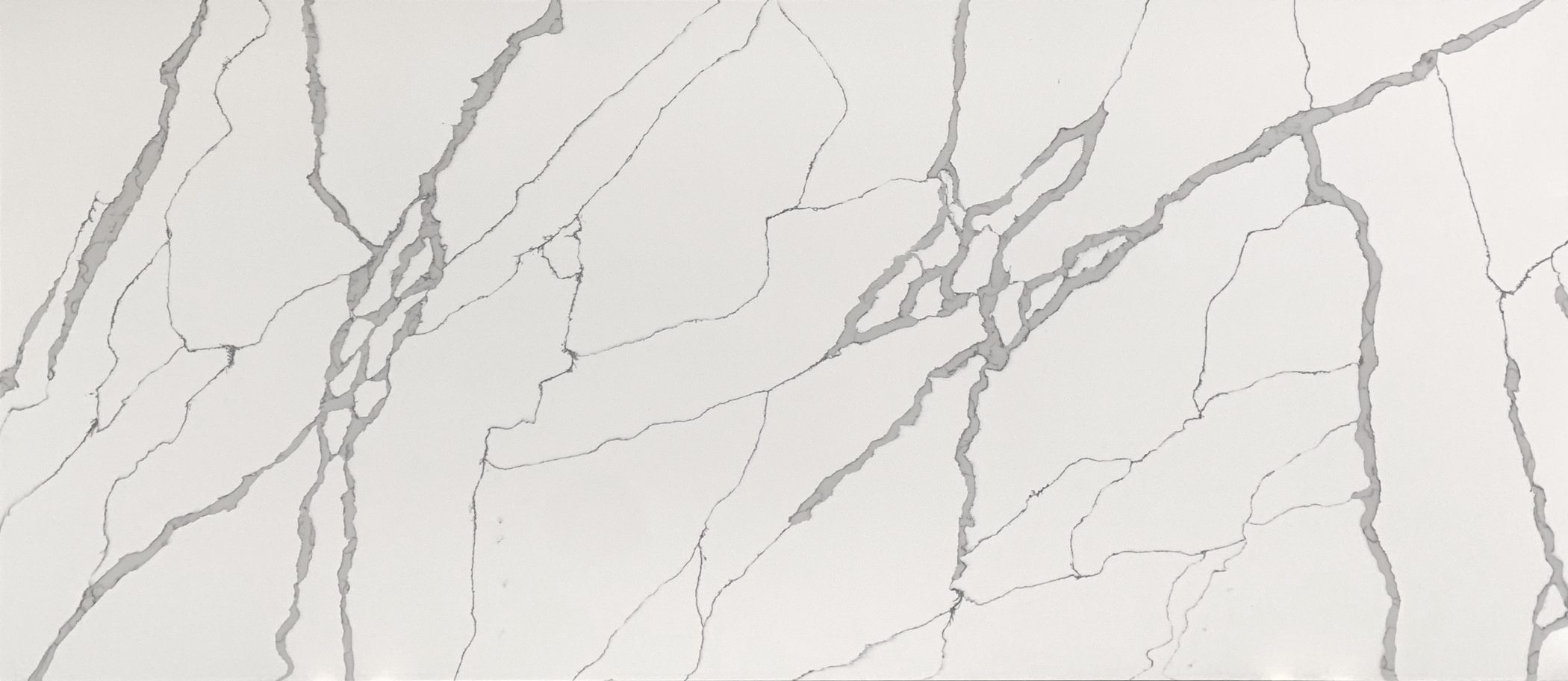 The abstract veining runs dramatically over a warm white background for a unique design combination. This style is difficult to find elsewhere.