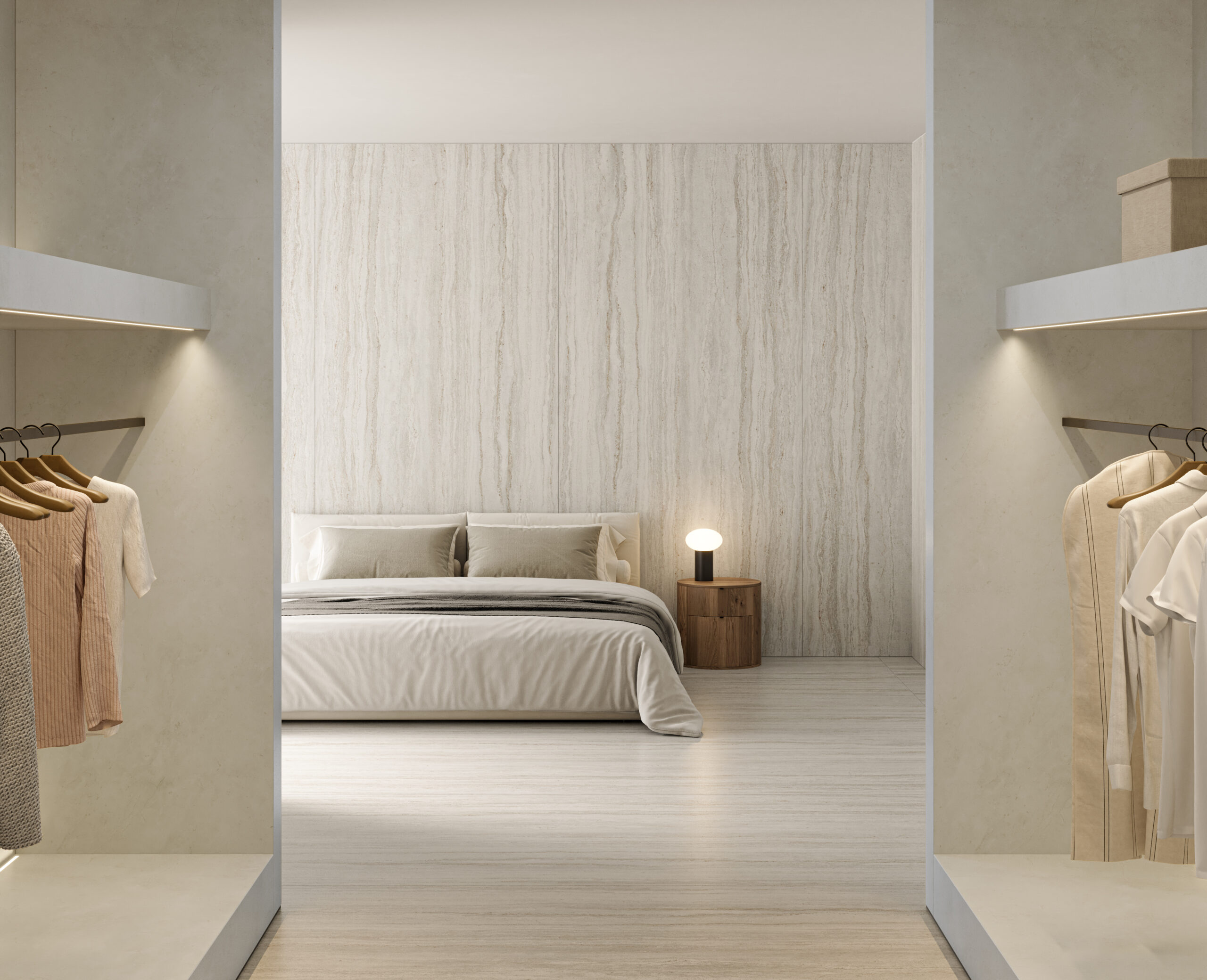 With its cream background crossed by a parallel pattern of irregular veins in shades of grey and blue, this colour is inspired by the classic beauty of Roman silver travertine, one of the stones that characterised the architecture of the Eternal City and which today lends personality to interior design and architectural projects with contemporary lines.